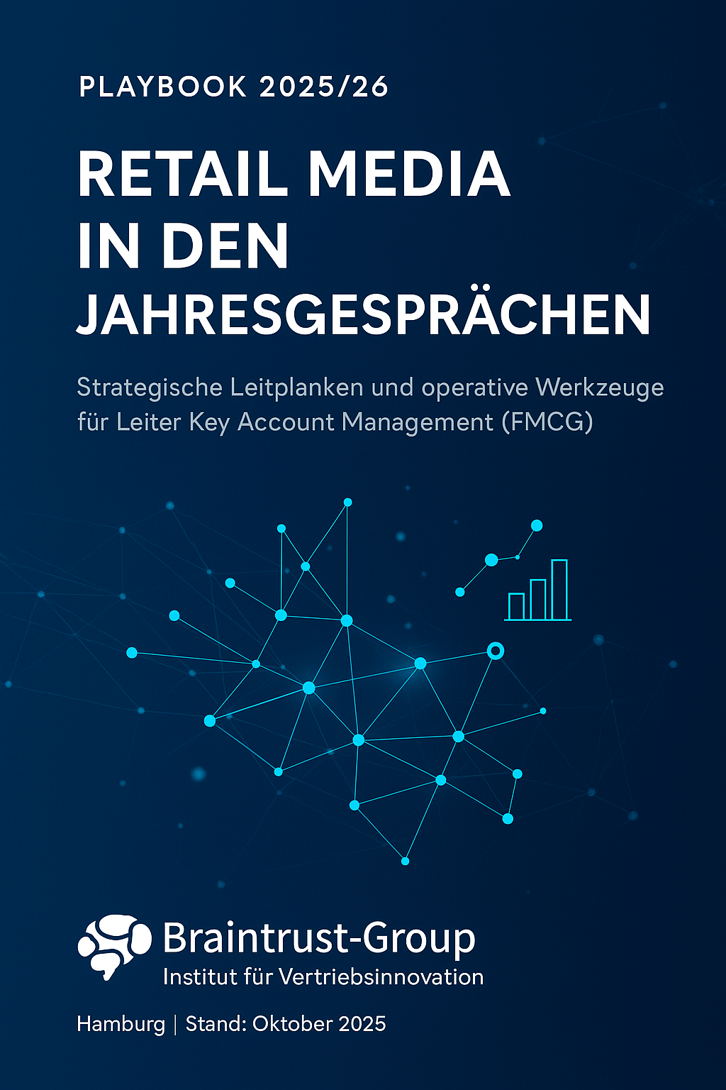 Auf 35 Seiten ein praxisorientierter Leitfaden für die Teilnehmer unserer Expertenzirkel, um Retail Media als strategischen Bestandteil der Jahresgespräche mit dem Handel zu integrieren. Es verbindet Strategie, Governance und operative Umsetzung zu einem klaren Steuerungssystem für Key Account Management (KAM), Vertrieb und Shopper Marketing.